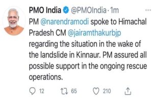 किन्नौर में भूस्खलन की घटना काे लेकर PM ने CM से की बात, हरसंभव मदद का दिया भराेसा