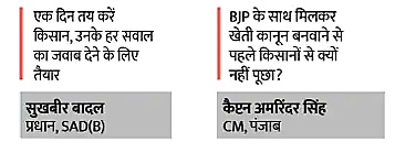 अगले वर्ष होने वाले विधानसभा चुनावों को लेकर पंजाब में राजनीति गर्माने लगी है। पंजाब में सबसे बड़ा मुद्दा केंद्र के खेती सुधार कानून व उसका विरोध कर रहे किसान हैं। इसका बड़ा कारण पंजाब की 70% आबादी का प्रत्यक्ष या अप्रत्यक्ष तौर पर खेतीबाड़ी से जुड़ा होना है। इसको लेकर अब शिरोमणी अकाली दल (SAD) बादल के प्रधान व पूर्व डिप्टी सीएम सुखबीर बादल और कांग्रेस सरकार के CM कैप्टन अमरिंदर सिंह आमने-सामने हो गए हैं। सुखबीर ने कहा कि मेरी पूरी लीडरशिप किसानों का जवाब देने को तैयार है। वहीं, कैप्टन ने पलटवार करते हुए कहा कि BJP के साथ मिलकर खेती कानून जबरन लागू कराने से पहले अकाली दल ने किसानों को क्यों नहीं पूछा?।
