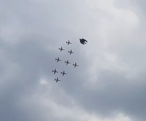 जालंधर में शुक्रवार सुबह टीम ने आसमान में कला बाजियां दिखाकर युवाओं में कुछ कर गुजरने का उत्साह पैदा किया। शहर के लोगों ने भी घर के बाहर आकर और छतों से विमानों के करतबों का आनंद उठाया। सूर्य किरण एयरोबेटिक दस्ते में कुल 9 विमान शामिल थे।