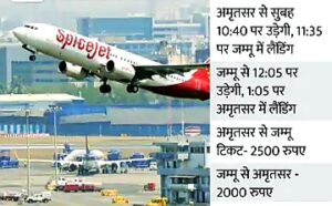इस फ्लाइट को स्पाइस जेट नवरात्रि के बीच शुरू कर रही है, ताकि उन्हें अच्छी प्रतिक्रया मिल सके। वहीं दूसरी तरफ इस फ्लाइट का किराया भी काफी कम रखा गया है। अमृतसर से जम्मू के बीच सफर तकरीबन 2500 रुपए में किया जा सकता है, जबकि जम्मू से अमृतसर की फ्लाइट तकरीबन 2000 रुपए में बुक की जा सकती है।