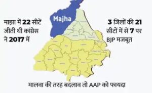 कांग्रेस 2017 के चुनाव में माझा की 25 में से 22 सीटों पर विजयी रही, लेकिन इस बार उसके गढ़ में AAP सेंध लगा रही है। यहां 21 सीटें पठानकोट, गुरदासपुर व अमृतसर जिलों में है और यहां 5 से 7 सीटों पर BJP मजबूत दिख रही है। 2017 में अकाली दल माझा में सिर्फ 2 सीटों पर जीता था। इस बार अकाली दल गुरदासपुर, अमृतसर और तरनतारन जिले की 7 से 9 सीटों पर मजबूत दिख रहा है। माझा में भी इस बार वोटर मालवा की तरह ‘चेंज’ चाहता है और इसका फायदा यहां AAP को मिल सकता है।