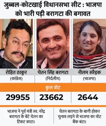 जुब्बल-कोटखाई में भाजपा को भारी पड़ा बरागटा का टिकट काटना