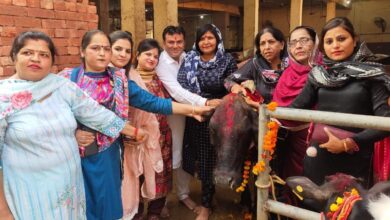 गौ पूजन से पुण्य फल की प्राप्ति होती है : मीनू शर्मा – भाजपा महिला मोर्चा ने किया गौपाष्टमी पर गौ पूजन