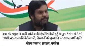 मेरे होल्डिंग कंपनी के चेयरमैन से पांच सवाल हैं। क्या उन्होंने कभी कोरोना की हेंडलिंग कैसे हुई, इसे लेकर सरकार से सवाल पूछा। क्या गंगा में तैरती लाशों पर बयान दिया। 45 साल की बेरोजगारी पर बयान दिया। हाथरस की बेटी को रातों रात जलाए जाने पर बयान दिया। गृह राज्यमंत्री के बेटे द्वारा किसानों को कुचलने पर बयान दिया।